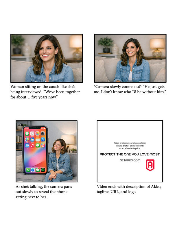 To show humorous examples of how we treat our phone like a family member, loved one, or just someone who is always by our side no matter what. We wanted to make people realize that Akko understands this, and won't judge them for it, but will help them protect their devices that they love so dearly.